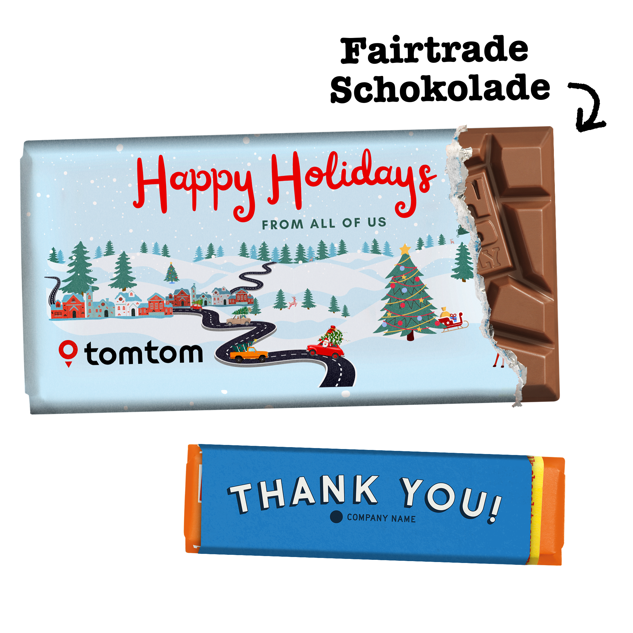 Verschenkt an eure Mitarbeiter:innen und Kolleg:innen personalisierte Schokolade zu Weihnachten - auch perfekt zum Nikolaus oder als Wichtelgeschenk!