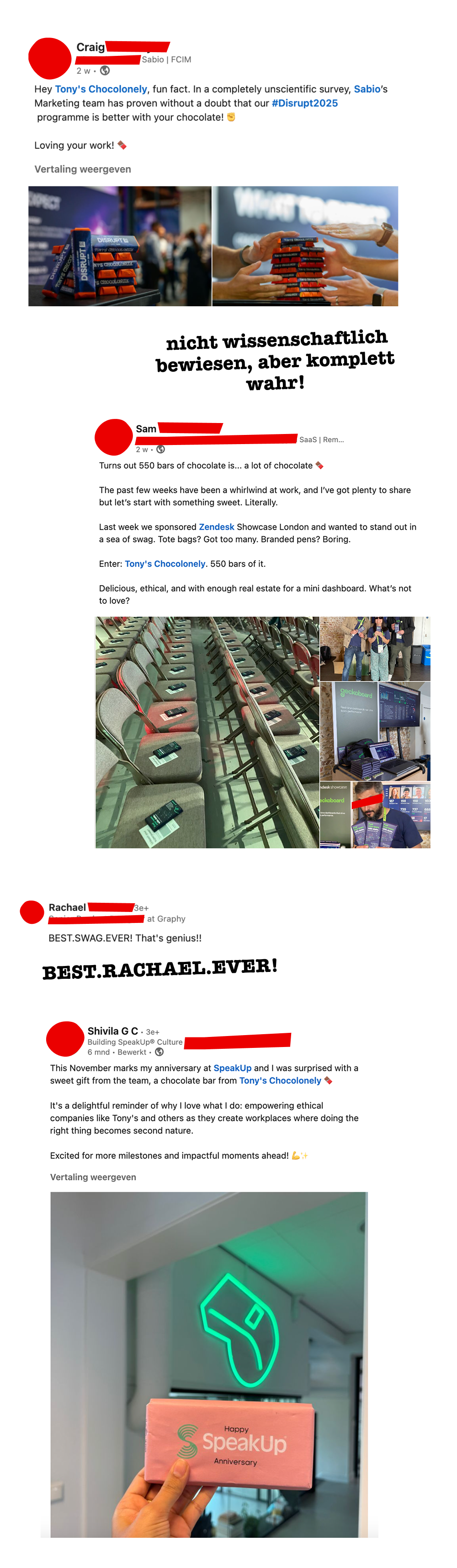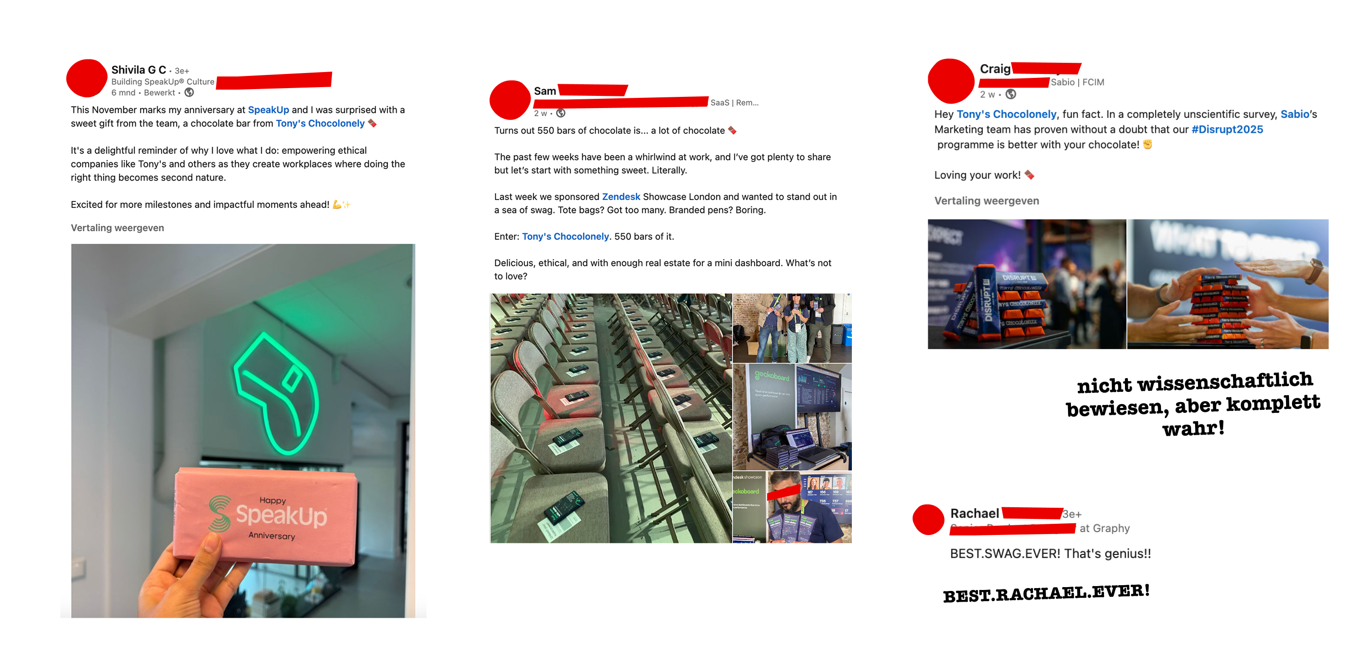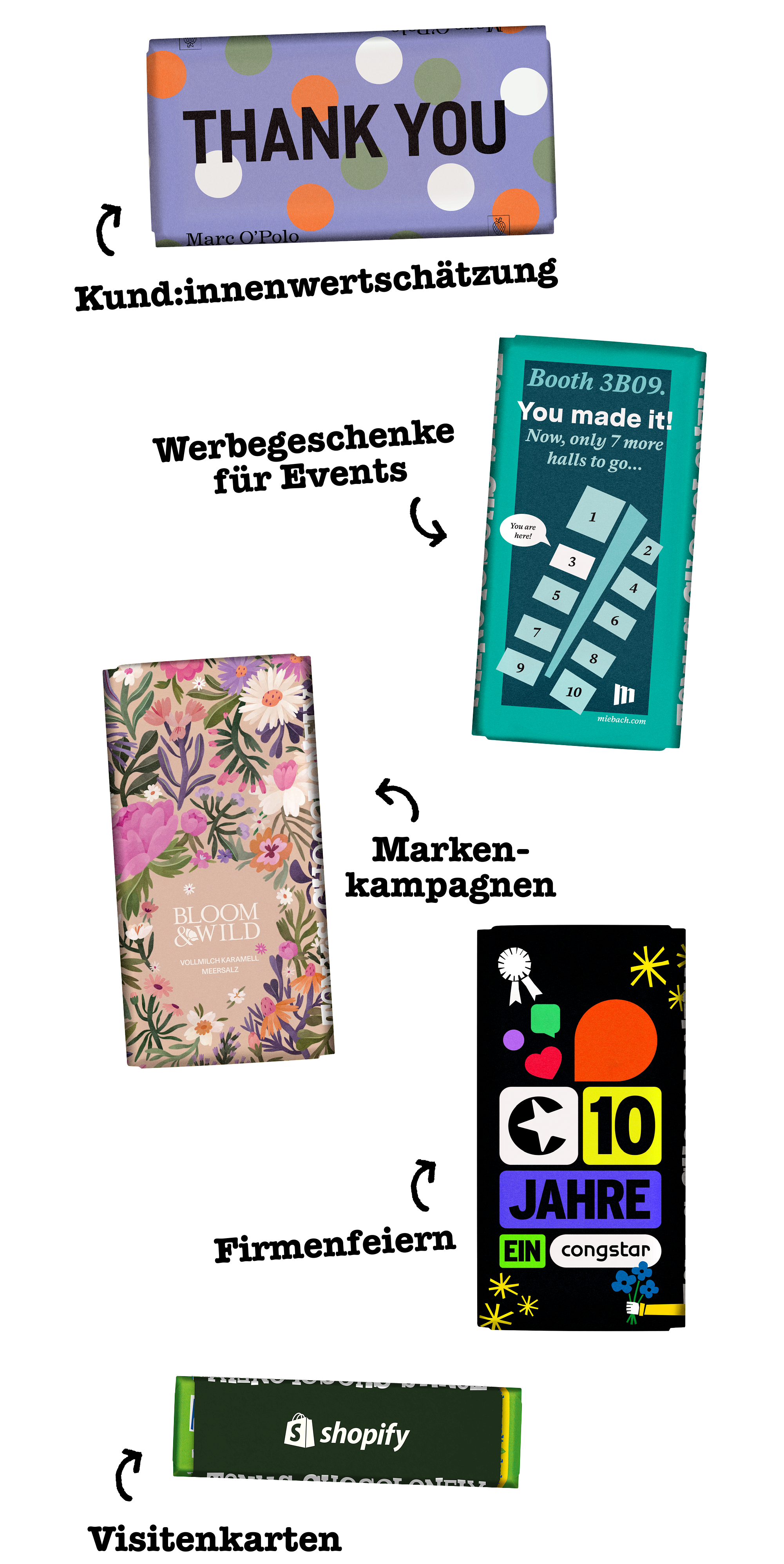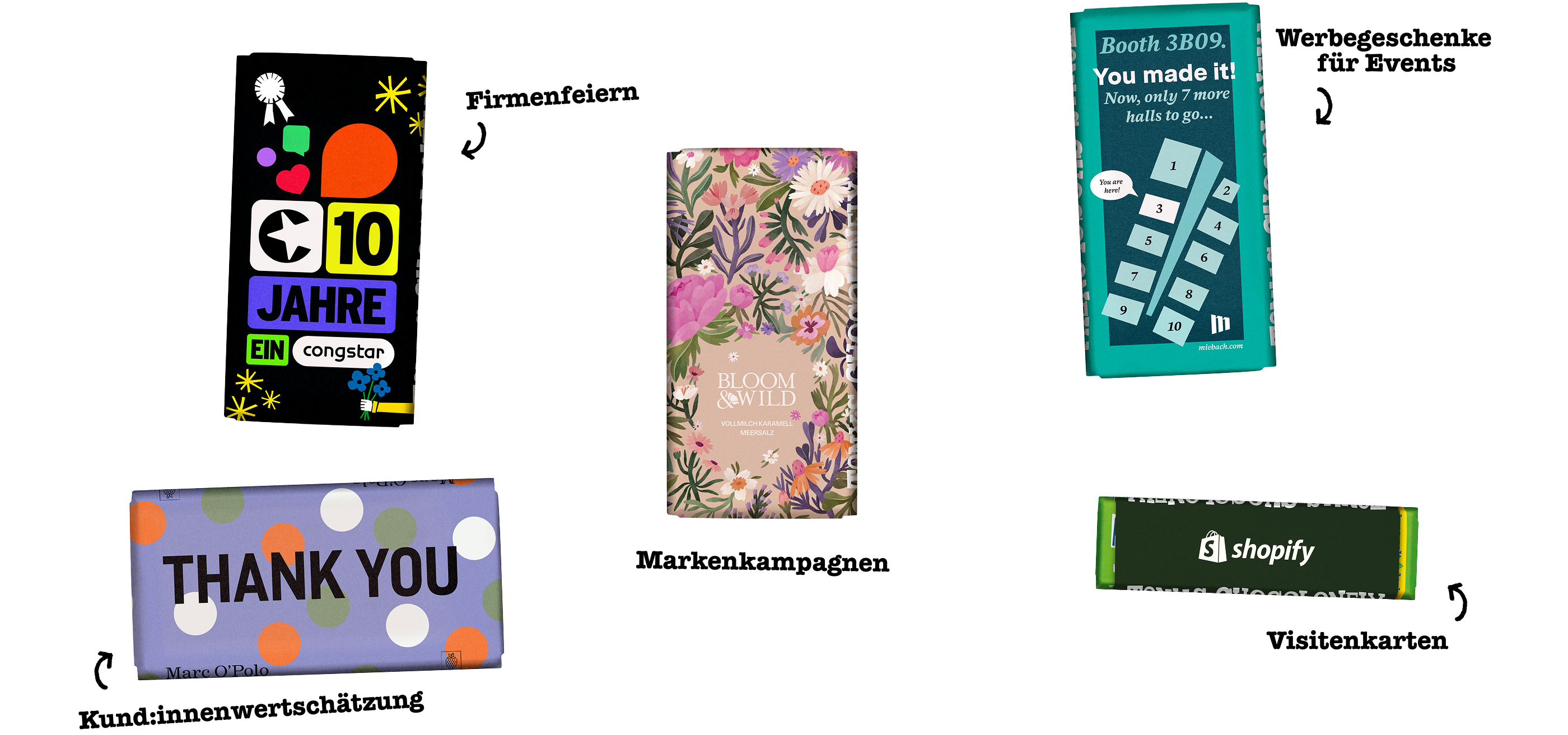 Natürlich erzählen wir euch hier, dass unsere personalisierte Schokoladen super als Werbegeschenke auf euren Events, bei Kampagnen und Firmenfeiern ankommen (irgendwie logisch).. Aber zum Glück machen das auch andere! Also warum nur auf unser Wort vertrauen, wenn ihr euch auch von anderen Unternehmen überzeugen lassen könnt?