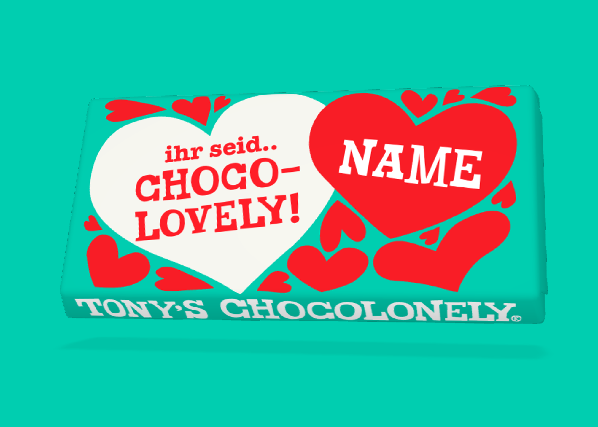 Ihr habt Interesse an der Personalisierung anderer Produkte? Bei einer Bestellmenge über 10.000 Stück können wir eine Umsetzung intern prüfen. Melde dich einfach direkt bei kreativbox@tonyschocolonely.com und wir prüfen deine Anfrage.